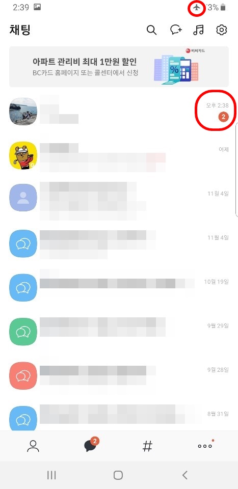 대화방에서 비행기모드 해제시